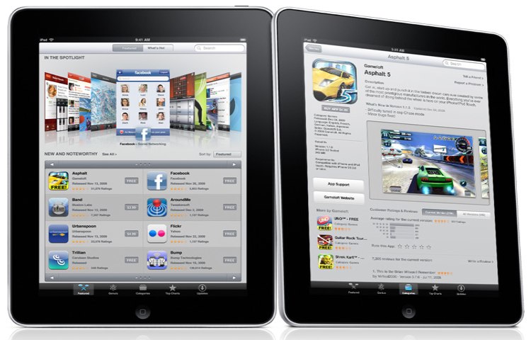 Apple have pushed out a new version of the iPhone SDK today, with support for the iPad – and a simulator – in the hope that developers will jump on board. However all of the original iPhone apps will run on the tablet, either at their standard resolution in the center of the display or at 2x zoom resolution for full-screen use. The App Store is available on the iPad, obviously, and iPad-specific titles will be prioritized. There's still no support for multitasking, however.