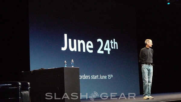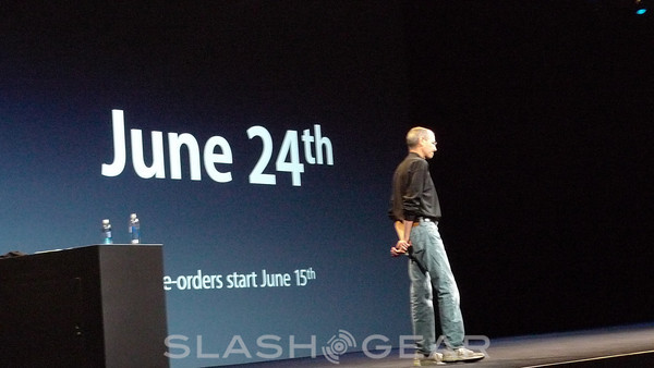 The device will be on sale on June 24th, and it will be up for pre-order starting June 15th. As we've said in the past, the iPhone 3G is officially retired, and right now the iPhone 3GS, in its 8GB capacity, will only be $99. The iPhone 4 is going to launch in five countries: United States, France, Germany, the UK, and Japan. After that, and by the end of September 2010, the new iPhone will be in 88 countries.