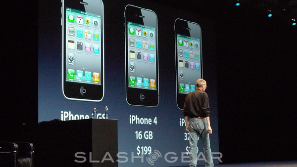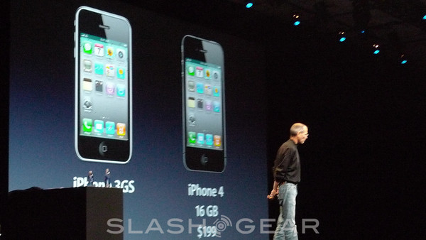 Steve Jobs, still standing on the stage at WWDC 2010 on Monday, finally unveiled the pricing for the next member of the iPhone family. Prices, whether you're surprised or not, aren't all that different than what we've come to expect from Apple, working together with AT&T, and there's two models to choose from this time around.