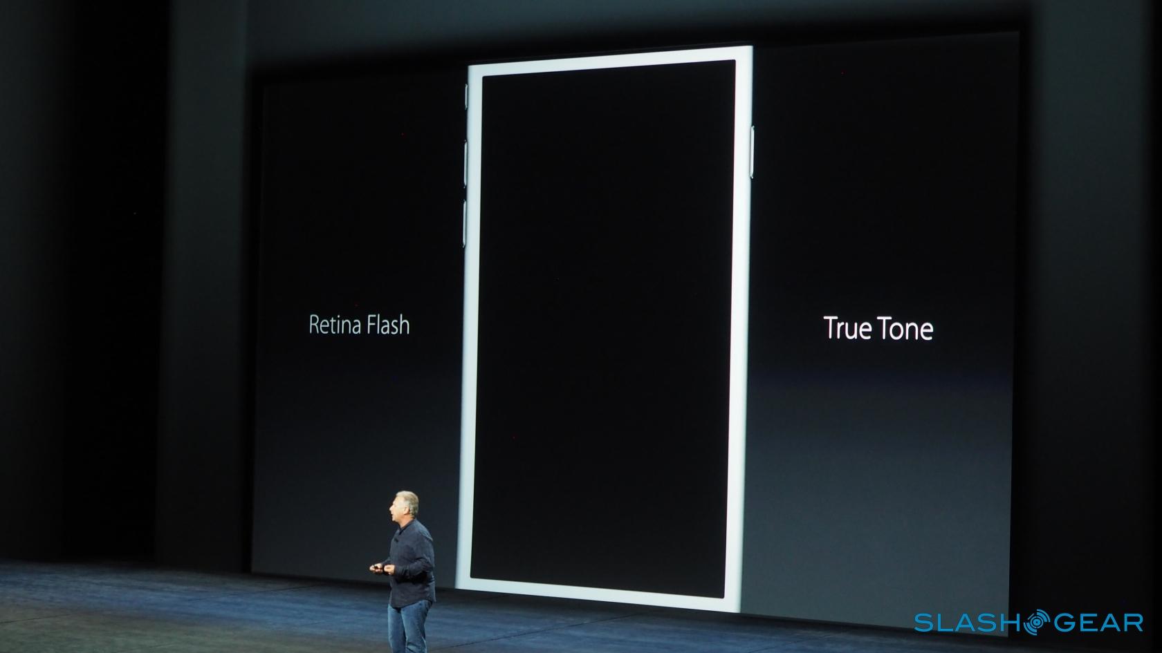On the front, there's a new 5-megapixel camera for selfies. The display can also be turned into a "Retina Flash" with True Tone to match the ambient light tone, and boost the display to three times the brightness while you fire off a shot.