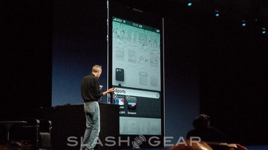 There are upwards of 1,500 new features being released with iOS 4. Things like Folders, Unified Inbox, and Multitasking (which we've seen before) are coming along for the ride. As Steve Jobs put it, they weren't the first on the market with multitasking, but they took the time to make sure that it is done right. If you don't, then you kill your battery, and that's just not a good user experience.