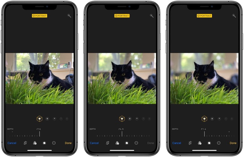 The other big change is to Portrait mode. As before, it combines the two front or rear cameras for a faux-bokeh effect on the background. Now, though, as well as switching between different lighting types, you can also adjust the degree of blur. By default you get a simulation of an f/4.5 lens, but you can swipe that all the way to f/1.4 for maximum blur, or to f/16 for far less.