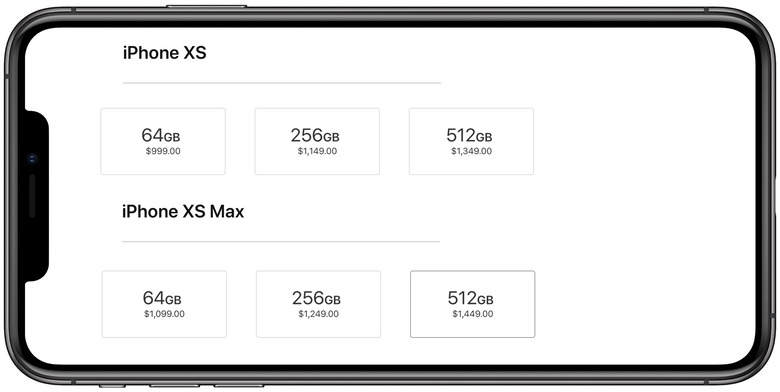 To say they're expensive is an understatement. Like the iPhone X, the iPhone XS starts out at $999. You pay $100 more if you want the bigger display of the iPhone XS Max. 256 GB of storage will cost you $1,149 for the XS or $1,249 for the XS Max. The new 512 GB option – which seems like overkill for all but the most ambitious of users – is a heady $1,349 for the XS or $1,449 for the XS Max.