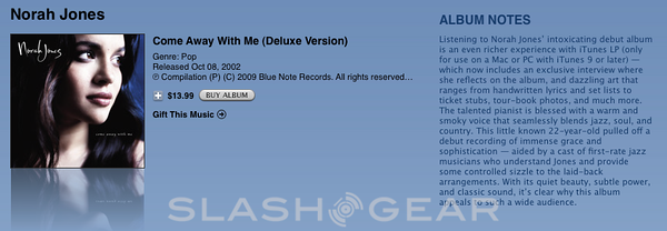 First up, we've got iTunes LP. In this day and age, with the digital download basically ruling over every kind of media that exists, the physical parts of an album were basically lost. Now though, iTunes 9 has the LP function, which brings a brand new sort of interactivity to listening to your music. By downloading select albums, you are able to experience a beautifully designed world right there in your iTunes library, on your Mac or PC. As you listen to your music, you are able to interact with animated lyrics, as well as liner notes, watch performance videos, view photos about the band or artists, and enjoy other bonus materials embedded within.