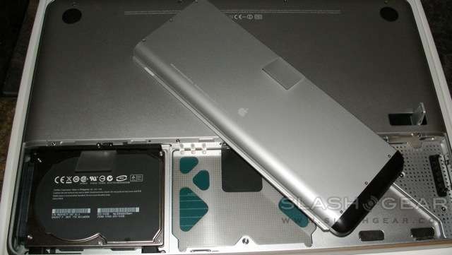 Two stock variations of MacBook are available, one with a 2.0GHz Intel Core 2 Duo and the other, which we have to test, with a 2.4GHz chip. Each has 3MB L2 cache, 1066MHz frontside bus and 2GB of DDR3 RAM as standard; maximum supported memory is 4GB. The cheaper 2.0GHz MacBook comes with a 160GB 5,400rpm SATA hard-drive, with 250GB or 320GB versions optional; the 2.4GHz model automatically gets the 250GB drive. Each can alternatively be fitted with a 128GB solid-state drive, which promises faster access times and reduced power use at the not-insubstantial cost of $600-700. We can't quite envisage a scenario where specifying the SSD would make sound financial sense; happily, unclipping the battery from the underside of the case exposes the hard-drive, so future upgrades – when prices are more reasonable – should be straightforward.