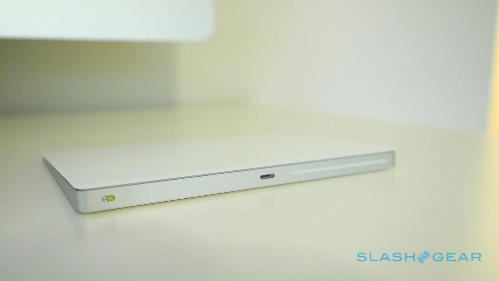 The top surface is 29-percent larger now, bigger than on any MacBook as well as that of the old Magic Trackpad, and it's at a shallower, 3-degree angle than before, matching the new keyboard. On the back is the same Lightning port, power switch, and plastic slit for the Bluetooth radio antenna as on the keyboard, too; as with that, I wish Apple had done something to enable hot-switching between two pairings.