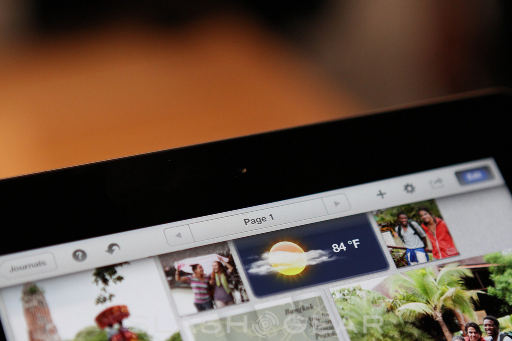 Physically, it's 0.11 pounds heavier than the existing iPad 2, though it's hardly noticeable. In the hand the brushed aluminum chassis feels much the same as before, but the picture quality is so crisp it looks like a promotional mock-up. Viewing angles are huge, too, certainly on a par with what we've seen from Super AMOLED panels in recent months.