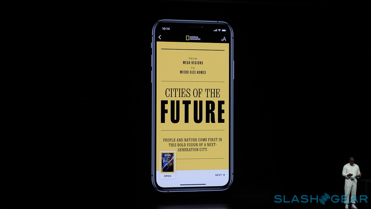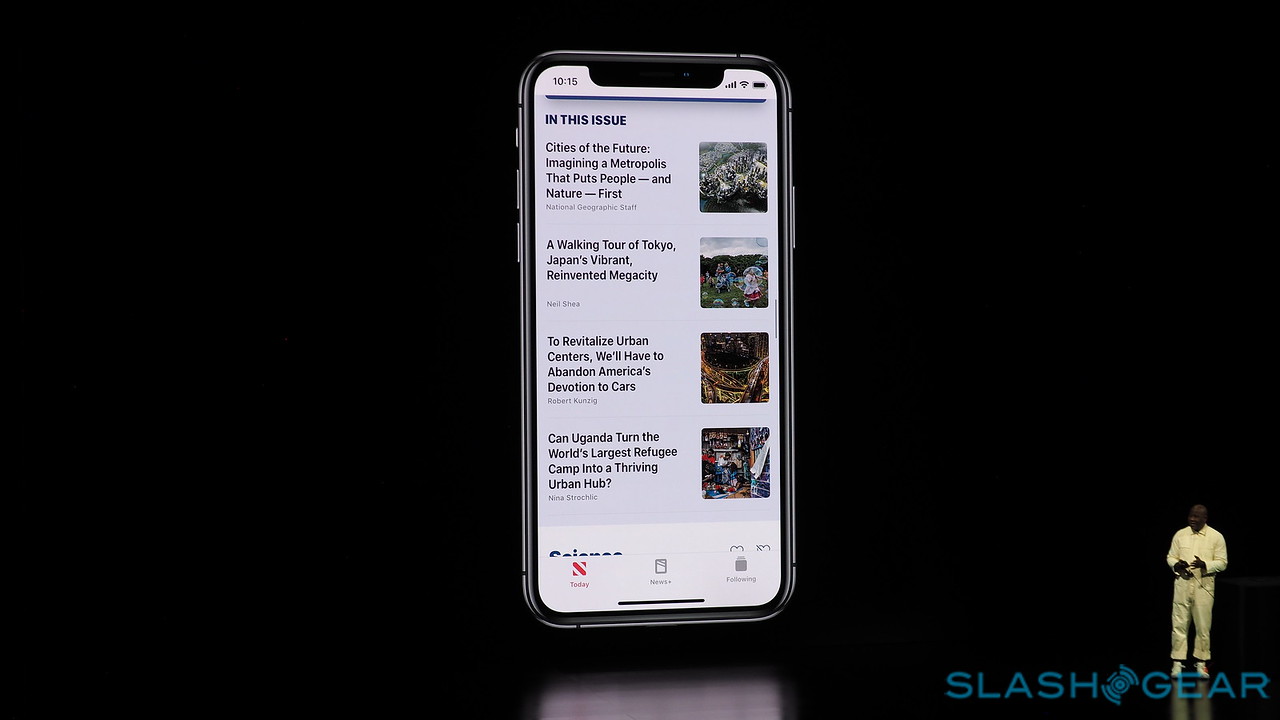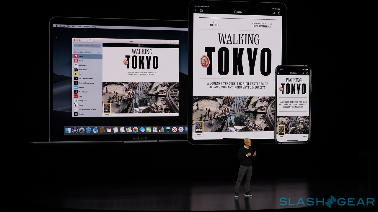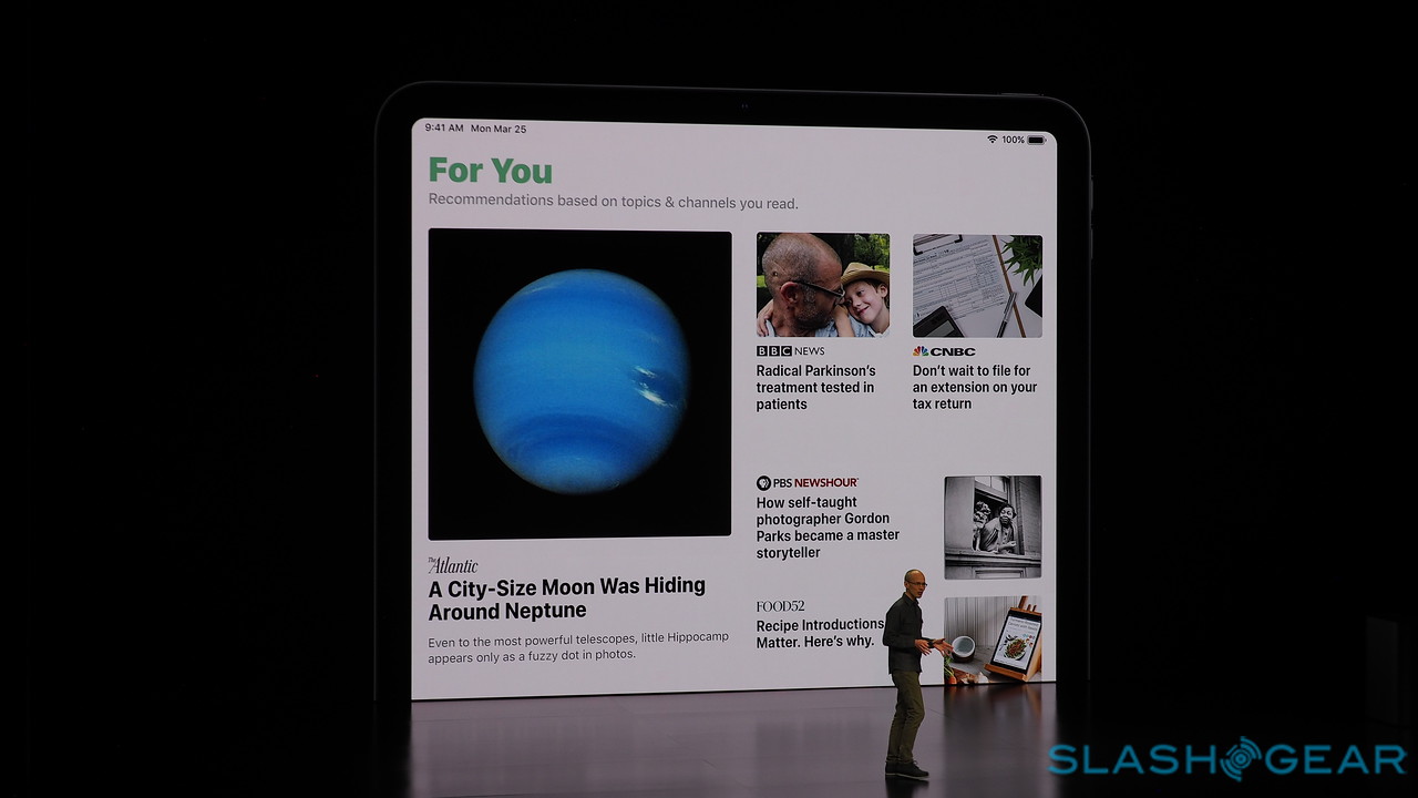 The Apple News+ experience will be integrated with the Apple News app. In the app there'll be three tabs, including Today, News+, and Following. And it was presented onstage on an iPhone first, iPad second. But don't let that fool you – it's a system made to work on both platforms, right out the gate.