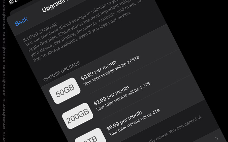 There's an Upgrade system within Apple One as well for iCloud storage. If you're looking at a service plan with 2TB iCloud storage, you can expand beyond said amount in tiers. If you wish to add 50GB, you'll pay an extra 99-cents per month. If you'd like to have a total of 2.2TB, you'll be paying an extra $3 a month, and for an extra $10 a month, you'll get 4TB storage total.