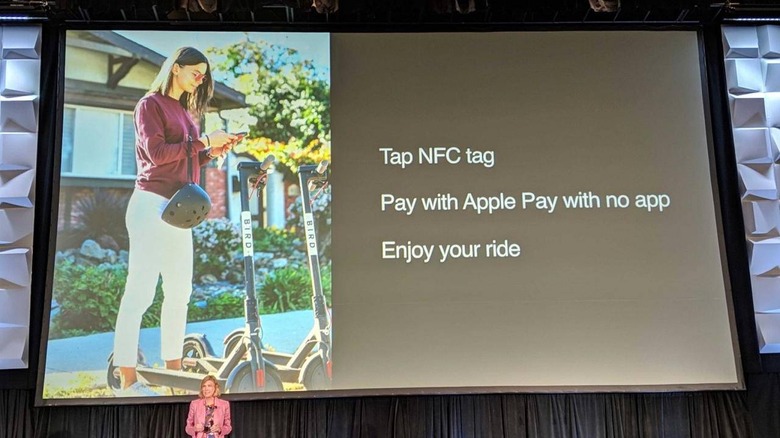 At the TRANSACT conference in Las Vegas, Apple veep for Apple Pay Jennifer Bailey revealed the ideal situation, at least for renting scooters or paying parking meters. All users will need to do is to tap their NFC-equipped iPhone and confirm the Apple Pay transaction. No apps, no setups, no sign-ins.