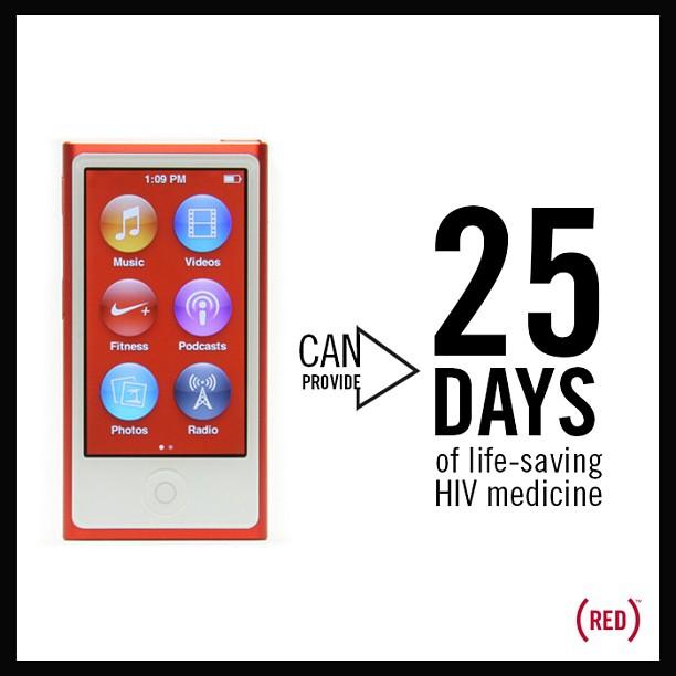 "The numbers don't lie: Every day more than 900 babies are born with HIV. By 2015 that number can be nearly zero. (RED) works with companies like Apple to fight for an AIDS-free generation by 2015 by creating (PRODUCT) RED merchandise. A percentage of gross profits from the sale of those products goes to the Global Fund to help fund AIDS programs in Africa." – Apple