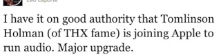 News broke today via Twitter that Apple may be hiring Tomlinson Holman, the inventor of the Lucasfilm THX high-fidelity audio system. The tweet came from Leo Laporte of the TWiT Netcast Network, who claimed that Holman is set to join Apple to "run audio."