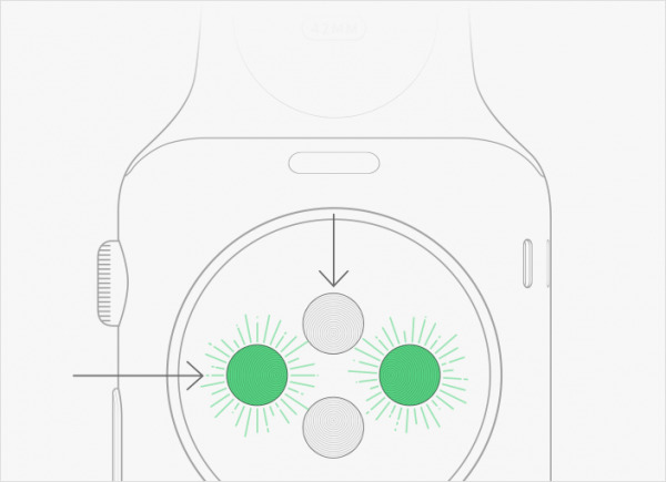 Apple also says that when Apple Watch reads your heart rate every ten minutes, it's done via infrared light. Should it not get a reading via that method, on come the green lights.