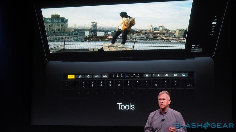 Apple has just unveiled the new MacBook Pros this morning, and as has been predicted, the laptop's row of function keys has been replaced with a touchscreen running above the remaining keyboard. It's official name is the "Touch Bar," and it offers context-sensitive buttons on a Retina display that supports gestures as well as taps. Plus, Touch ID has been integrated into the power button, on the far right.
