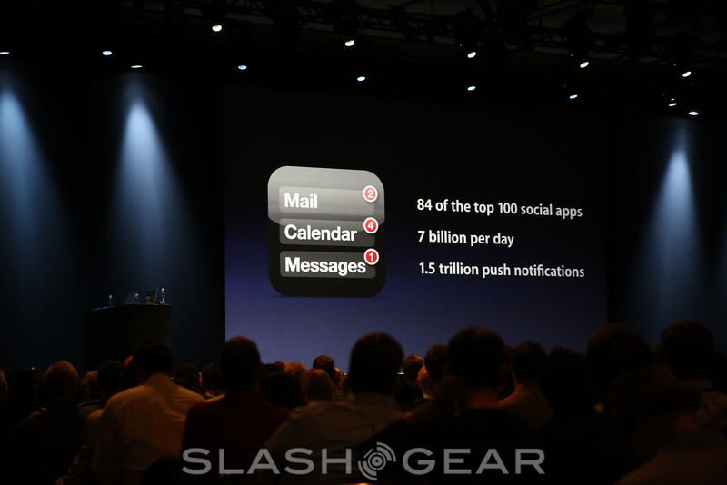 Next Apple spoke on how 140 million iMessage users existed, and how 1 billion messages were sent every single day. Out of the top 100 social apps, Apple noted that they had 84 of them working with Notification Center, and that 7 billion notifications were being sent per day. The Game Center was shown to have 130 million accounts with 67 of the top 100 games adopting it. Twitter showed 10 billion tweets inside iOS 5 alone.