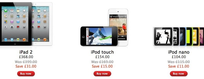 That means, despite the iPad 2 having been on sale for months now, actually finding it at a cheaper price than Apple's original RRP can be tricky. Apple is also offering the iPod touch at £154 and the iPod nano at £104, while the MacBook Air and MacBook Pro start at £768 and £918 respectively. An iMac will set you back £918.