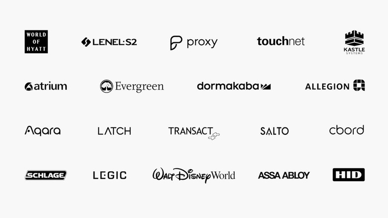Apple says that one of the first companies that will support UWB keys through Apple wallet is BMW. Hyatt Hotels will also support UWB keys at 1,000 properties to start. Other companies that have signed on to support UWB keys include Schlage, Walt Disney World, Assa Abloy, Proxy, Evergreen, Latch, and Atrium, among others. Check out the full list in the image below.