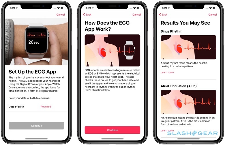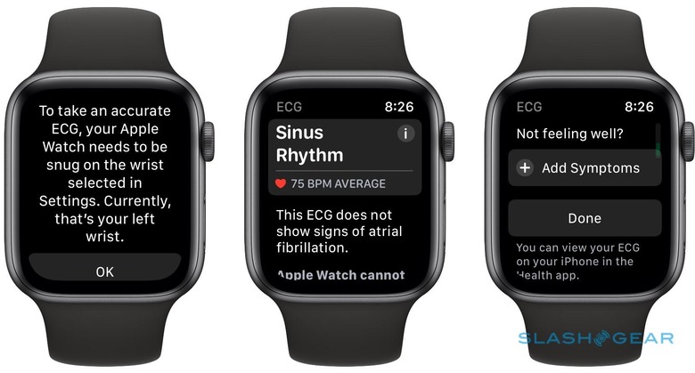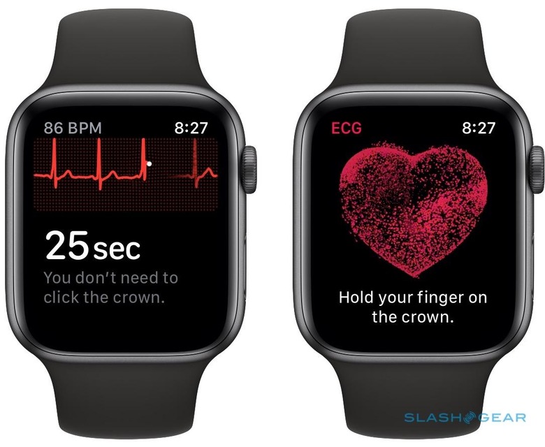 The ECG, or electrocardiogram, app measures the electrical pulses that cause the heart to beat. By comparing those pulses in your wrist with those in your fingertip of the opposite hand, the Apple Watch can track them across the heart. That way, it can check to see if the upper and lower chambers of the heart are in or out of rhythm.