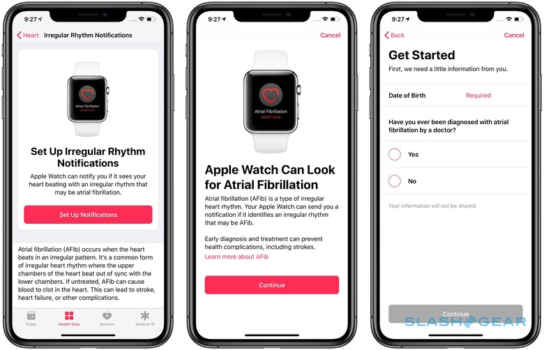 Much like the Apple Watch has been able to look out for unexpectedly high heart rates already – flagging if your pulse is racing, even if you're not active – now it can also highlight potential irregular rhythms, too. You have to enable it independently from setting up a normal ECG test, including putting in your date of birth and gender again.