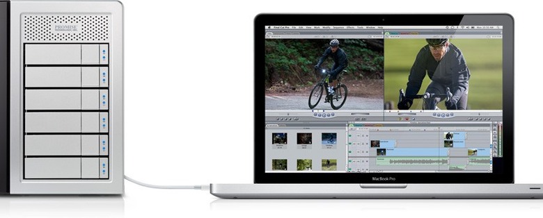 In addition to this speed, Thunderbolt is able to daisy-chain multiple devices without a hub – an ability USB has never had. With this ability, Apple is saying that a single MacBook Pro is able to support six devices, making it easy to hook up to one of those fantastical 6-display setups you've seen in your gaming or video-editing dreams.