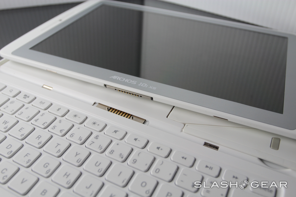 This device rolls out with a 10.1-inch 1280 x 800 pixel resolution 10.1-inch display surrounded by a rather unique looking bit of chassis. You'll be working with this device in white with slightly darker gray nearer the display, and the device brings on Archos' own "Coverboard." This Coverboard is both a protector for the display and a keyboard dock.