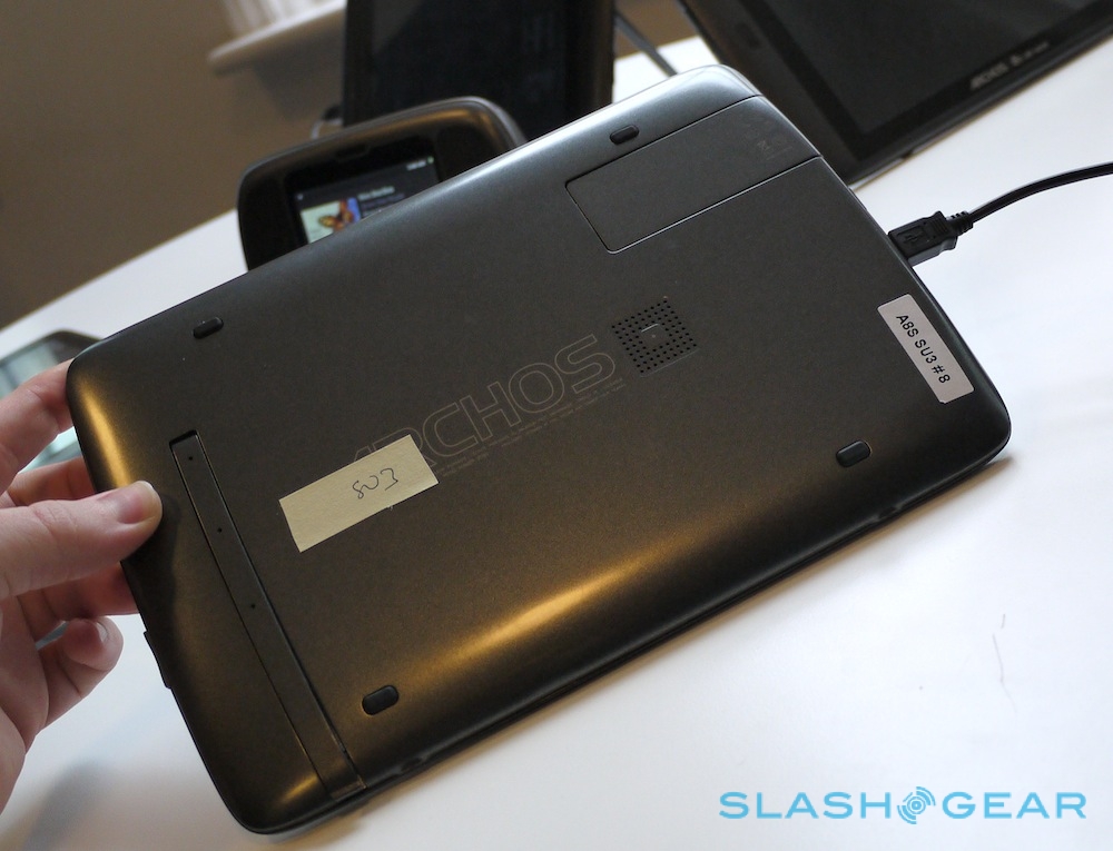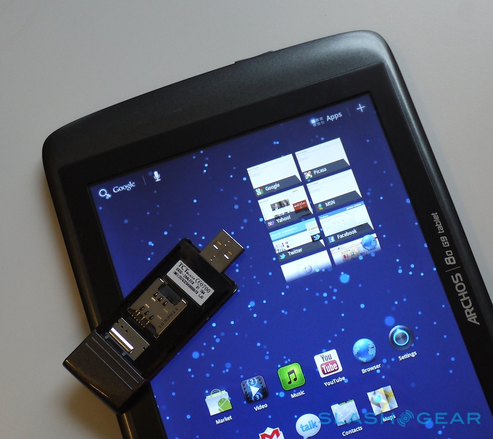Based on specs alone, you can easily see why the Archos tablets have would-be tableteers excited. The Archos 80 G9 has an 8-inch 4:3 aspect 1024 x 768 display while the Archos 101 G9 has a 10.1-inch 16:9 aspect 1280 x 800 display; both use capacitive touchscreens, run Android 3.1 Honeycomb, pack WiFi and can be fitted with an optional pre-paid 3G USB data stick in a special niche on the back.