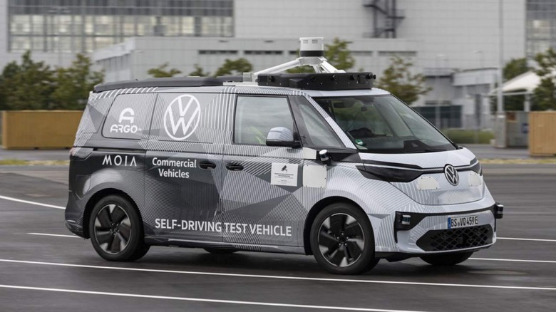 In Munich, automakers and partners are gearing up for the first IAA Mobility conference. Two of the companies showing off high-tech vehicles during the show are Argo AI and Volkswagen. They are showing off the all-electric ID. BUZZ AD, the "AD" in the name stands for Autonomous Driving.The show will host the debut of the first generation ID. BUZZ AD test vehicle. The vehicle is a van that will be the first from the Volkswagen Group with SAE Level 4 automation. ID. BUZZ AD is currently being tested at a close course track owned by Argo at the Franz Josef Strauss International Airport in Munich. The companies hope to deliver commercial self-driving vehicles to be used for commercial services in Hamburg by 2025.