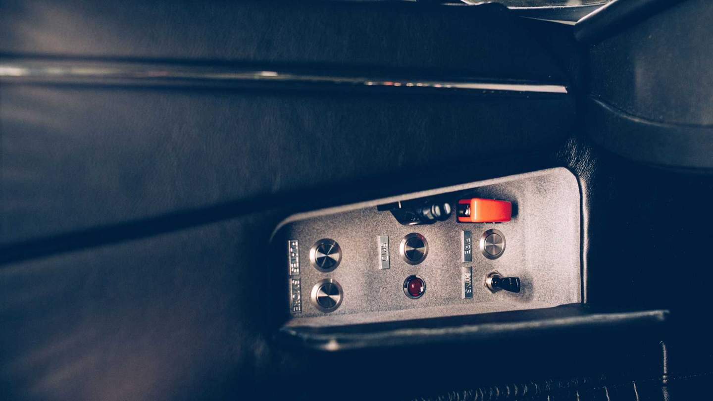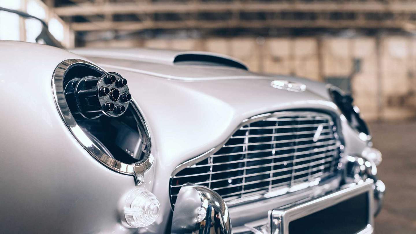 Bond's original DB5 is a hardtop, but it doesn't matter. What matters is having all the spy gadgets that Bond can't do without. The passenger door has a secret access panel with buttons to activate the car's many features. It has simulated machine guns behind the headlights and revolving license plates to evade the baddies and law enforcement. If you wish to escape in a literal plume of smoke, pushing a button engages a smokescreen from the exhaust pipe.