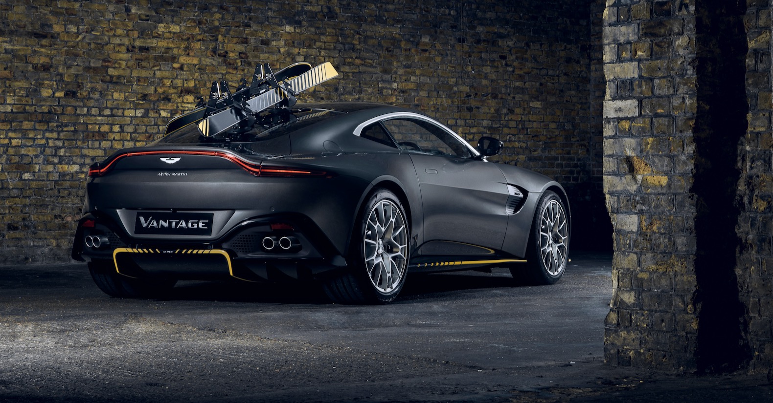 On the other hand, the Vantage 007 Edition is inspired by the original Aston Martin V8 which debuted in The Living Daylights. It also appears in No Time To Die as Bond's personal car. It has a bespoke mesh grille surrounded by a chrome bezel to reference the look of Aston's classic V8 Bond car. Finished in Cumberland Gray exterior paint, contrasting styling elements include a dashed yellow diffuser and an available 'winterized' pack which includes skis and a ski rack.
