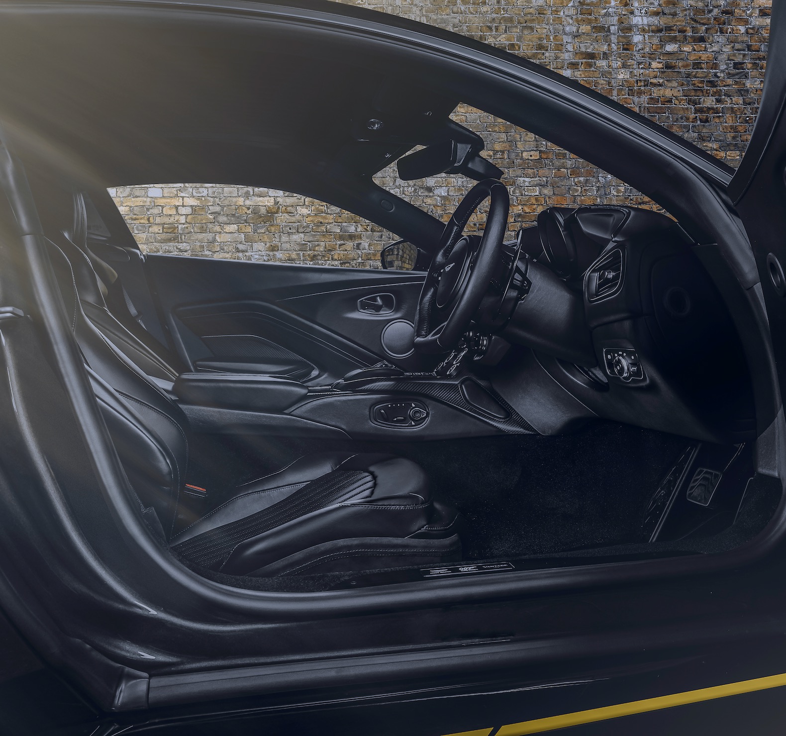 The interior is wrapped in Obsidian Black leather with dark chrome embellishments and subtle 007 brandings. The Vantage 007 Edition even comes with a laser-etched gadget plaque to mimic the weapons and gadgets of the original film car including virtual switches to control the missiles, rocket motor, and targeting display of the vehicle.