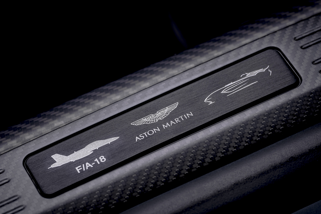 The version in the images here was designed with an F/A-18 livery. Aston says that the car was conceived a bit over 12 months ago. Aston underwent the development program from drawing board to production in that time. The V12 Speedster is described as a living show car.