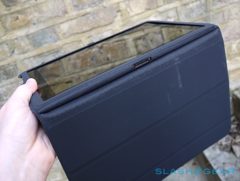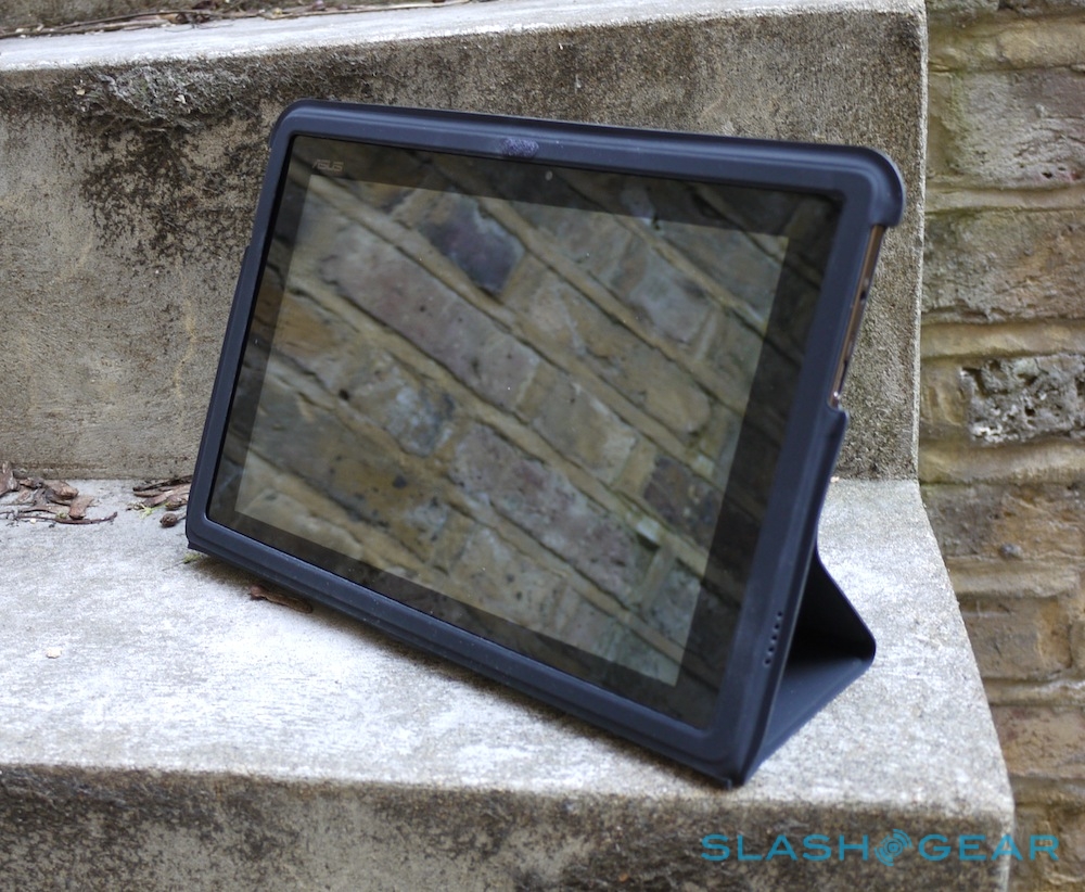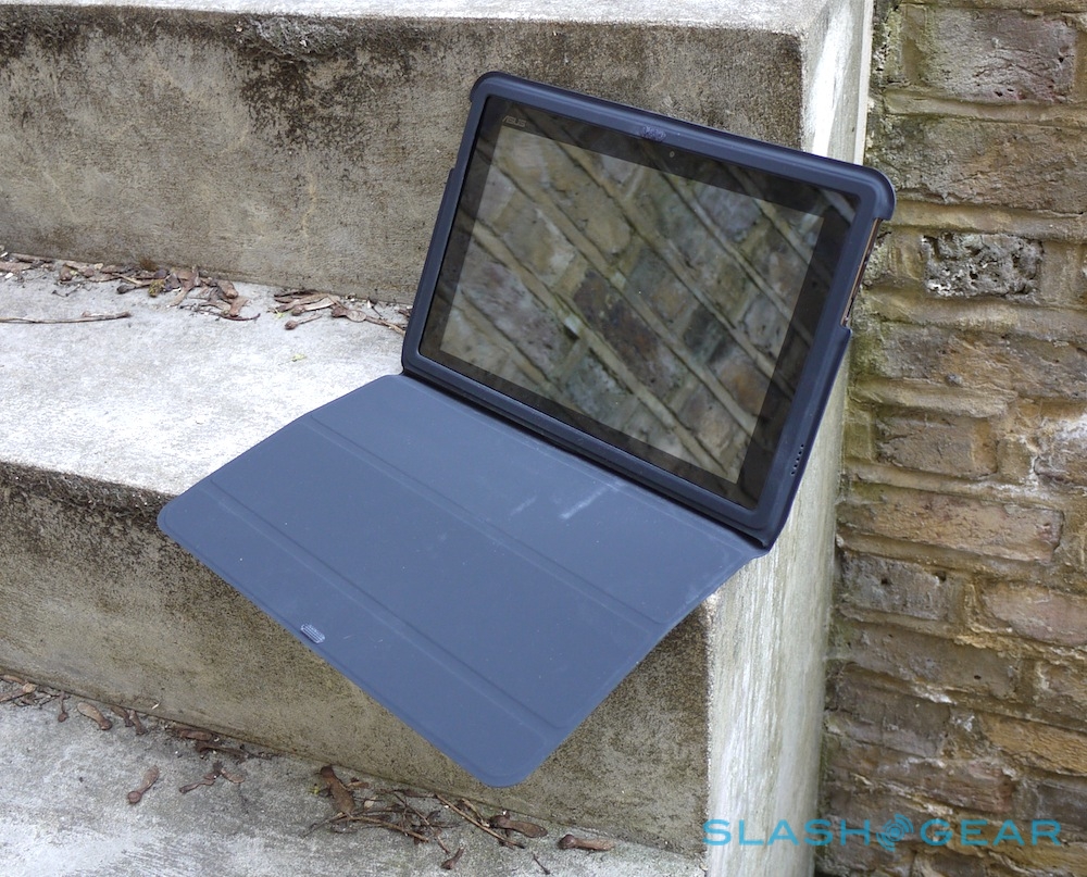 Upright it feels stable, though we were conscious that tapping the touchscreen could make the Transformer rock back in a mildly concerning way. A steadying hand made us feel a little safer. We'd consider the ASUS Sleeve Case more of a scuff-preventer than true all-purpose protection, though given the Gorilla Glass and the generally sturdy build of the tablet itself, perhaps it's all that's required for dropping the Eee Pad into a bag.