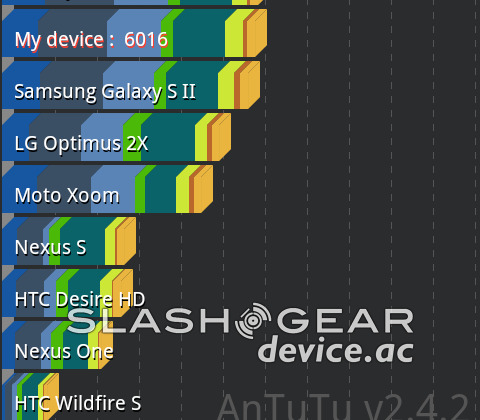 Of course as always you should note that comparing one device to another on a synthetic benchmarking system such as this can only be taken for so much, as each configuration is set up for different purposes and it's not often that a setup is made JUST to beat out the rest in a benchmark test. A good example of a device that IS made to win is our pal Simms' Nexus S device which you can see obliterating the competition over on Android Community with only a single core. That said, we've got to assume that this Kal-El aka Tegra 3 (if that's what it ends up being called) device has not been tweaked to beat the system and is instead JUST that powerful.