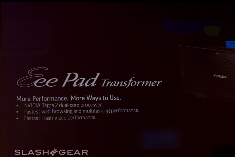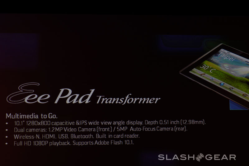 Also demoed today at the press conference was the ASUS Eee Pad Transformer. Bringing an ultra-versitile option to tablet fans the Transformer will provide both a tablet and notebook experience for the user.