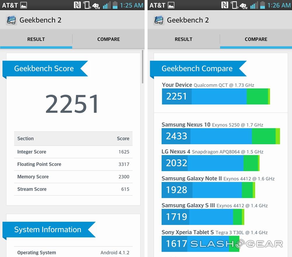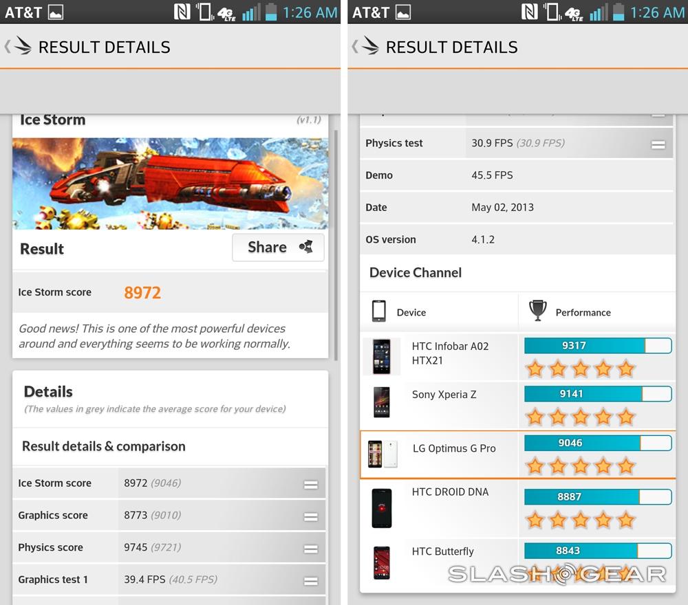 You'll find the LG Optimus G Pro out-performing most devices on the market today regardless of the slightly larger display size it works with. Above you'll find a gallery of benchmark results run on the device, many of which we've run for similar devices in the past. As you'll see, this device's biggest competitors are the HTC One and Samsung GALAXY S 4, the whole bunch running the same Qualcomm processor under the hood – the battle continues!