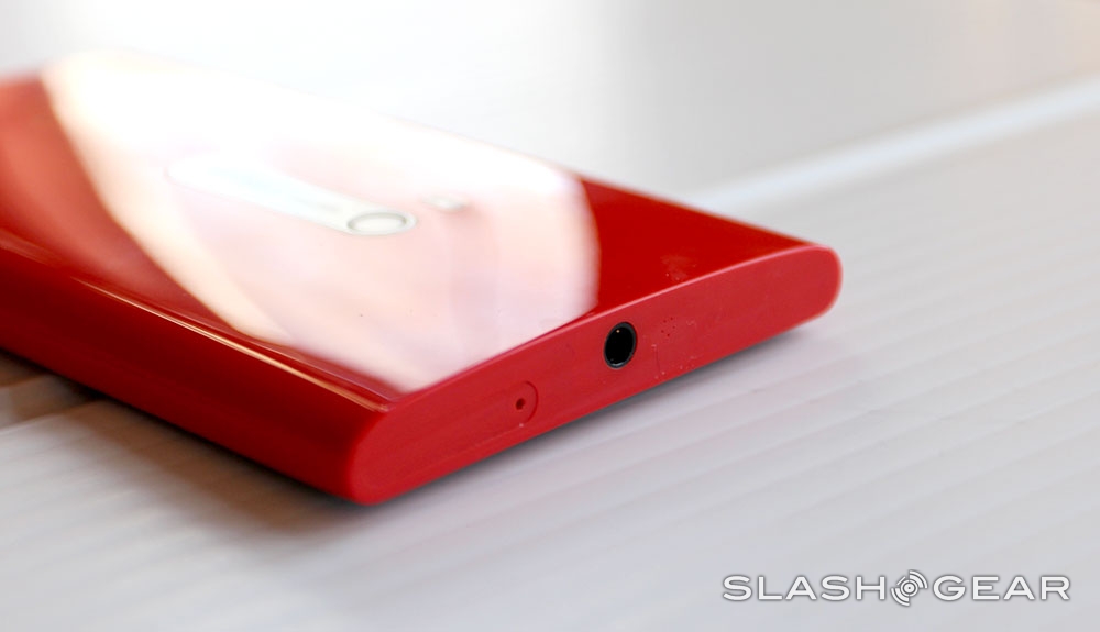 This device feels just as great to hold as each of the Nokia devices produced before with the same body – pillowy, round edges yet secure and solid throughout. The back is made entirely of hard plastic – here in red, but coming in several colors in the end, while the front is that one single Gorilla Glass 2 panel you'll just want to rub up against your cheek its so smooth; there's just something about those round edges. The top and the bottom of the device are flat and contain a couple of rather impressive speakers and a microUSB port on the bottom and a SIM card tray and single centered headphone jack at the top.