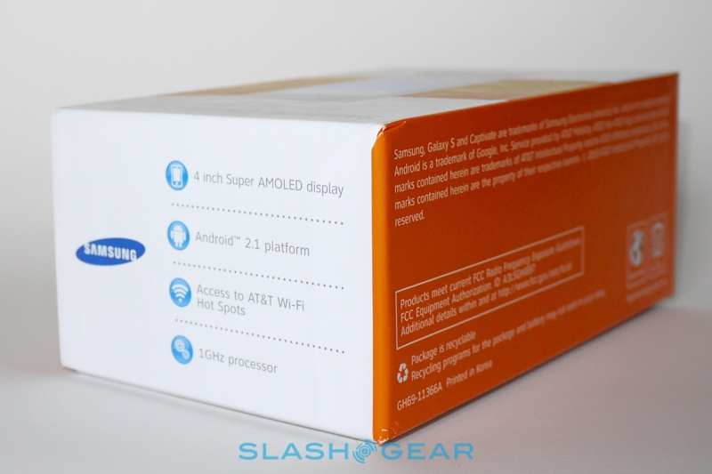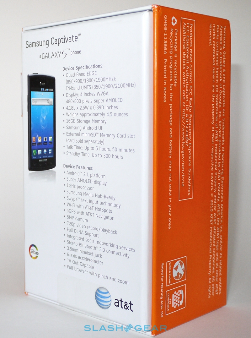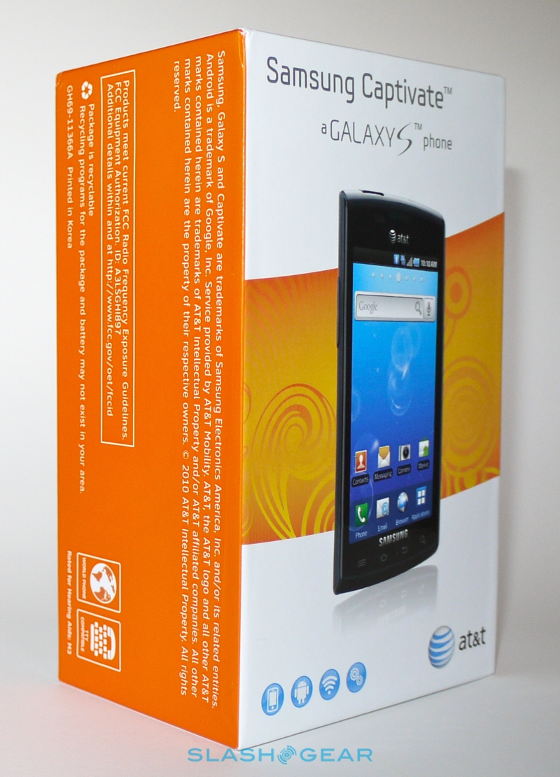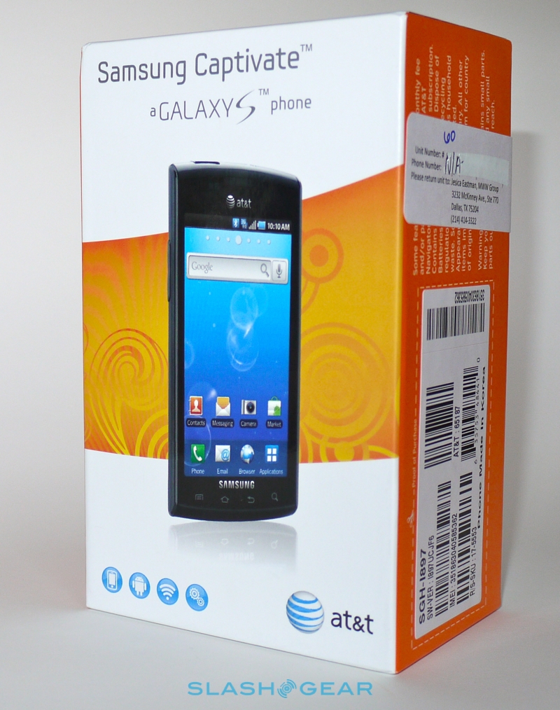 AT&T's Captivate is the first of Samsung's Galaxy S series smartphones to reach the US, and our review unit has just dropped onto the test bench. Packing a 4-inch Super AMOLED capacitive touchscreen, 1GHz Samsung Hummingbird processor and 16GB of onboard storage, AT&T's latest Android device marks a reasonably significant style departure from the original European Galaxy S, though you still get Android 2.1 and TouchWiz 3.0. Check out the unboxing and our first impressions of the AT&T Samsung Captivate after the cut.