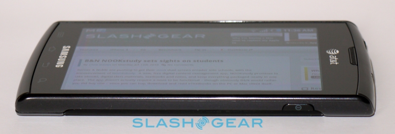 We've already got a pretty decent idea of how the Captivate will perform: inside the new casing it's basically the same as the Samsung Galaxy S we reviewed a few weeks back. Unfortunately while the style may be different, the less-then-impressive hand-feel is unchanged. In comparison to rival flagships like the iPhone 4 and Motorola DROID X (read our review), the Captivate feels plasticky, though at least it's lightweight and the plastics are of decent quality.