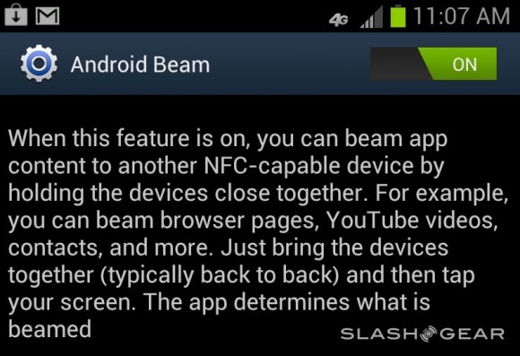First have a peek at some of the behind-the-scenes changes, starting with NFC. This device is now able to use Android Beam to send contacts, Web pages from your browser, or addresses from Google maps. Beaming works perfectly well between the Galaxy Note, the Galaxy Nexus, and the Galaxy S III for these small transfers using NFC. You'll still need to wait for the Galaxy S III's S-Beam function if you want to transfer files such as photos, video, and other larger media – someday, we hope!