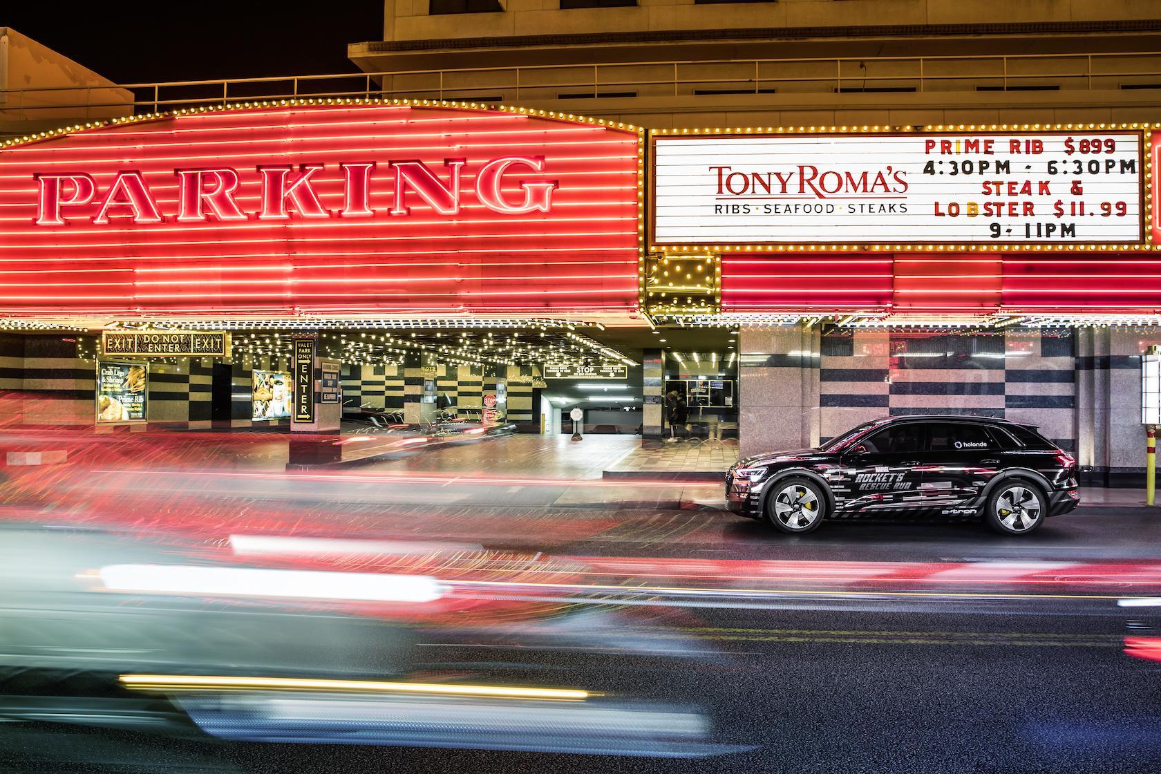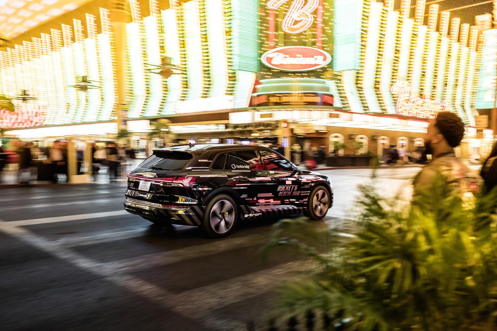 From the outside, it looks as though I'm in the back seat of a new Audi e-tron, being driven around Speed Vegas for roughly two laps. Look closer, though, and I'm not making awkward small-talk with my driver: instead, I donned a set of Oculus Rift virtual reality glasses, was handed a controller, and set to work being among the first to experience Holoride's vision of next-gen in-car entertainment.