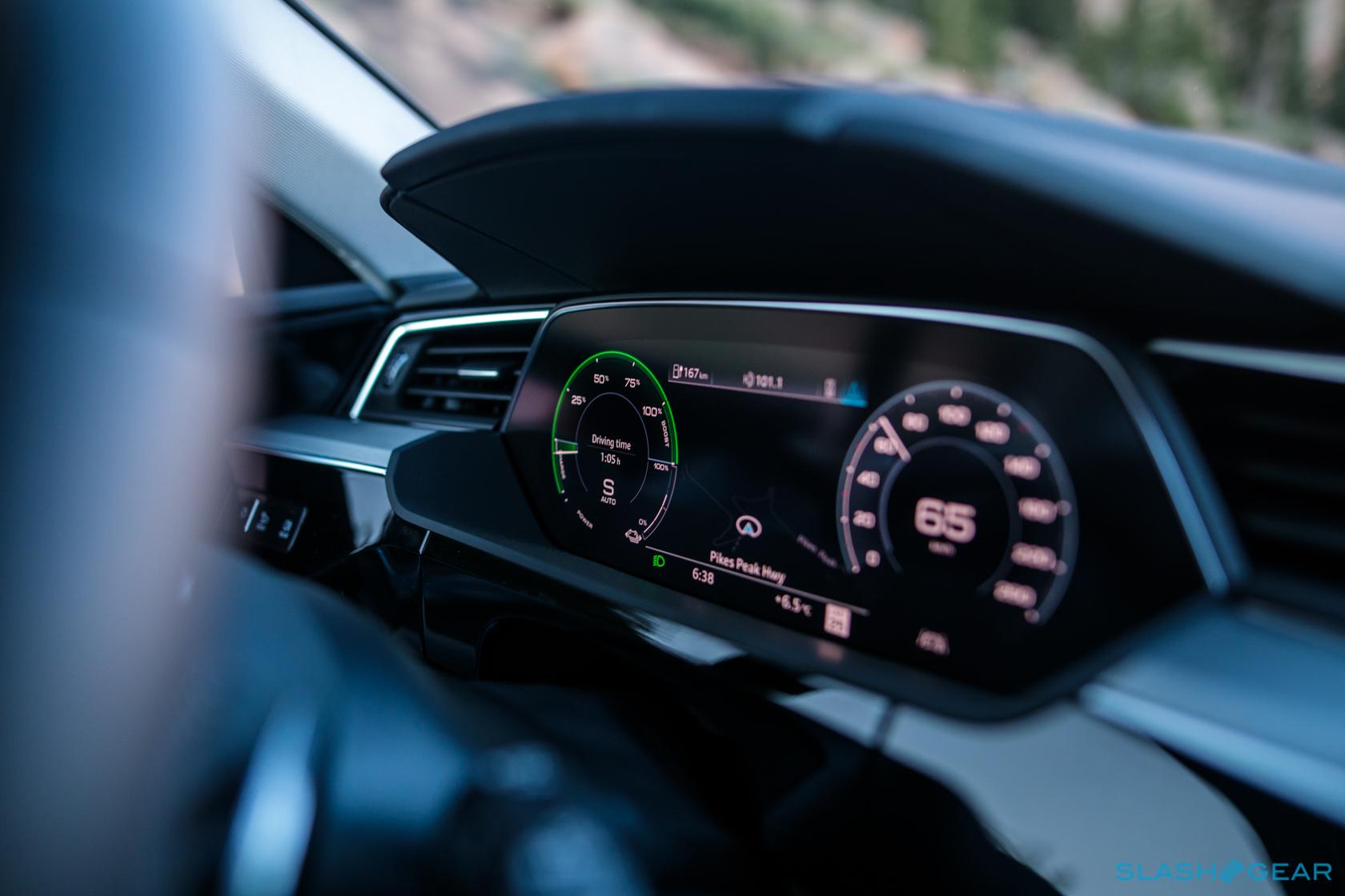 Not every drive will be a Pikes Peak adventure, and you might not want to think about which recuperation mode you're set to. As you'd expect, there's also an automatic coasting recuperation option, which taps into the same predictive efficiency assist system we've seen previous Audi cars and SUVs use to maximize mild-hybrid performance. Combining your upcoming route from the MMI navigation system, along with the long-range radar and front camera, it can adjust brake recuperation on-the-fly between electric and hydraulic, depending on the road ahead and what traffic you might be following.