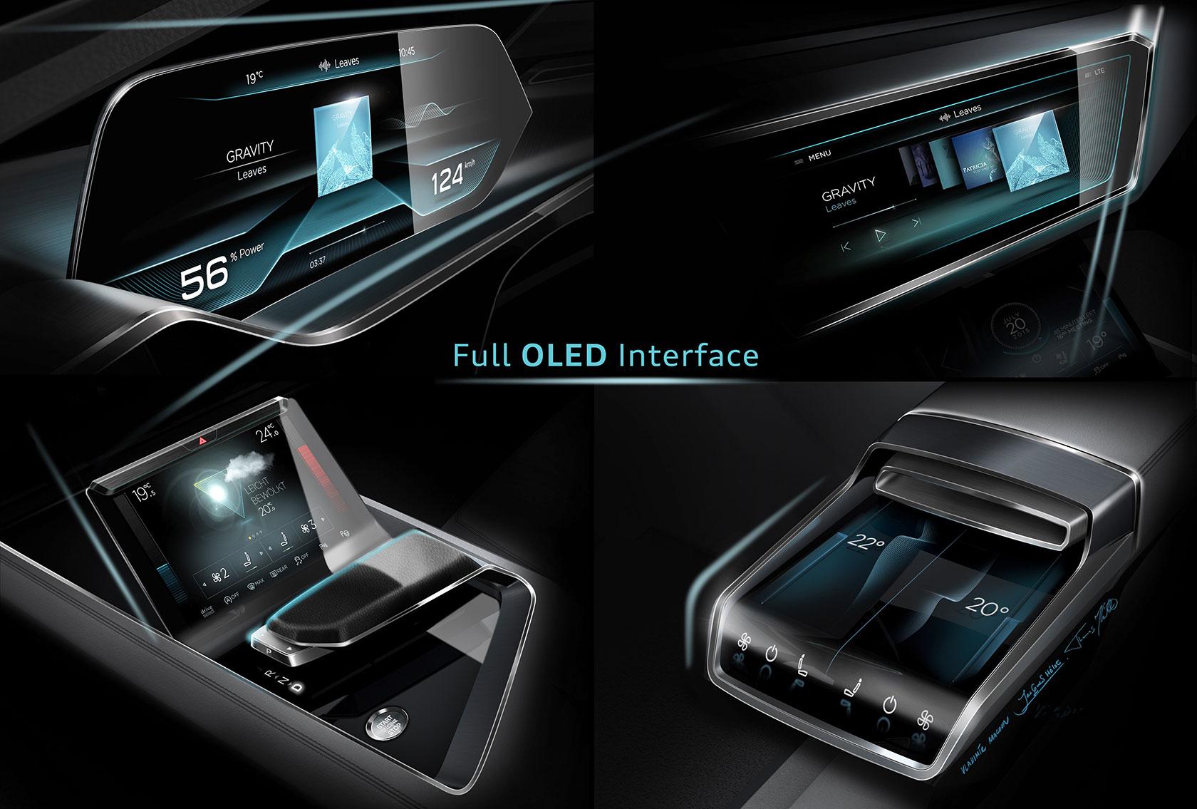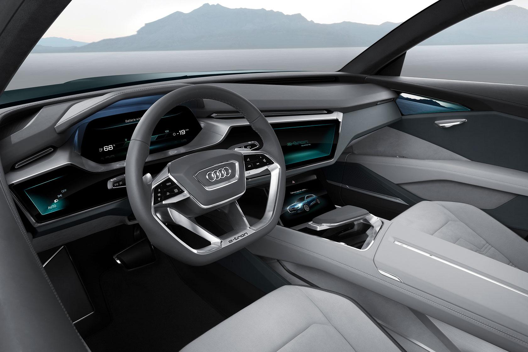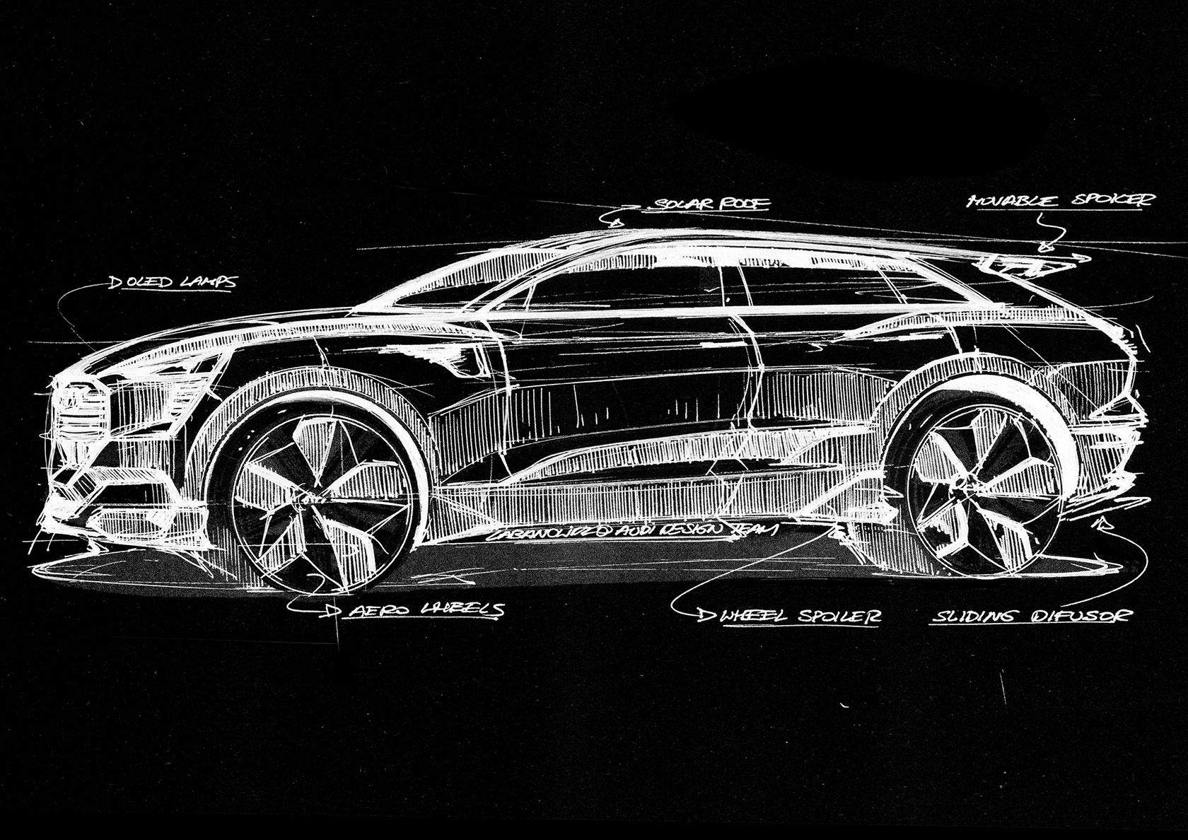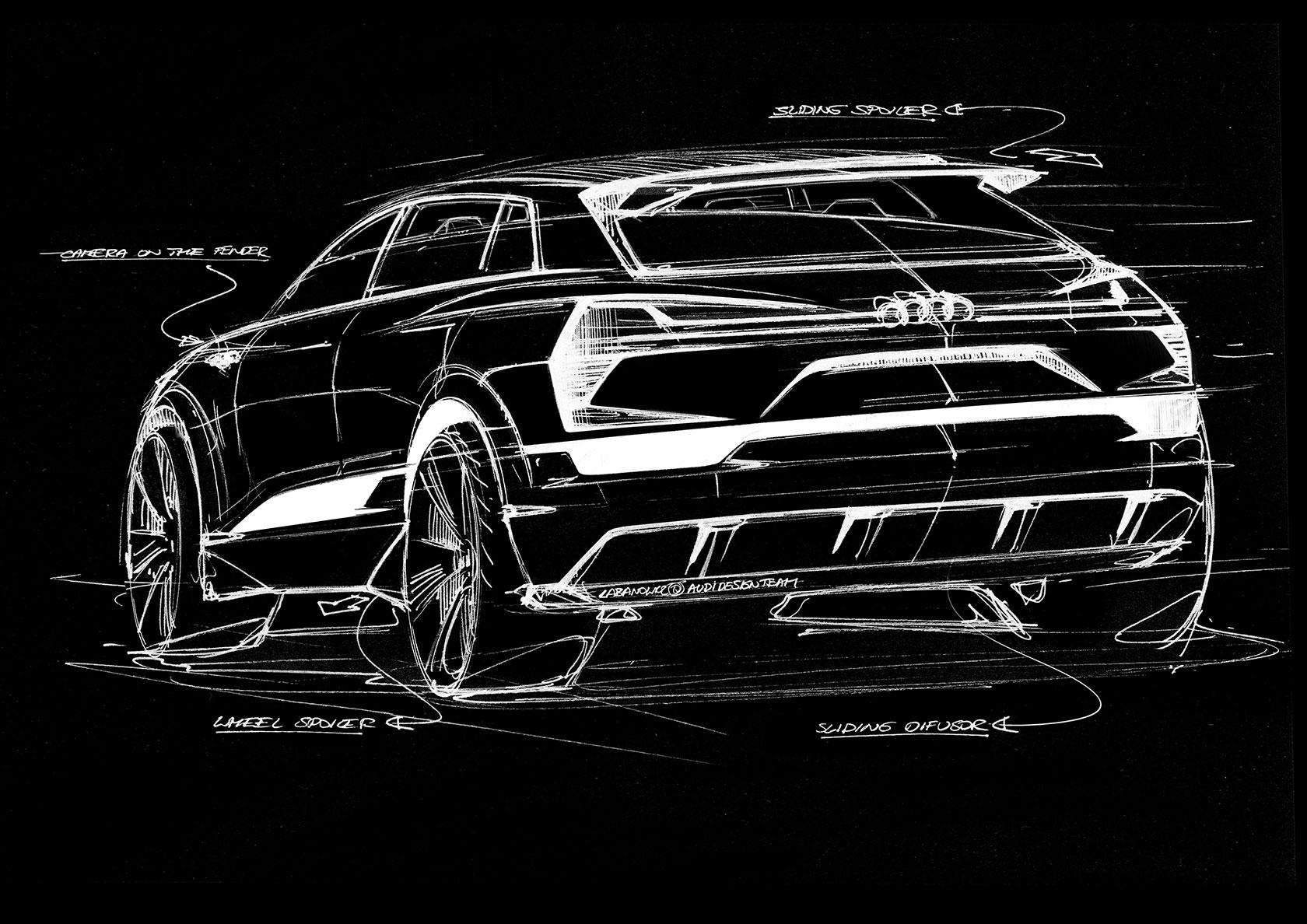 The Audi e-tron Quattro concept works with a new set of fully movable aerodynamic parts. Up front you'll find louvered blinds, while around the sides you'll find extendable sill sections, up top an extendable rear spoiler, and around the back an extendable rear diffusor.