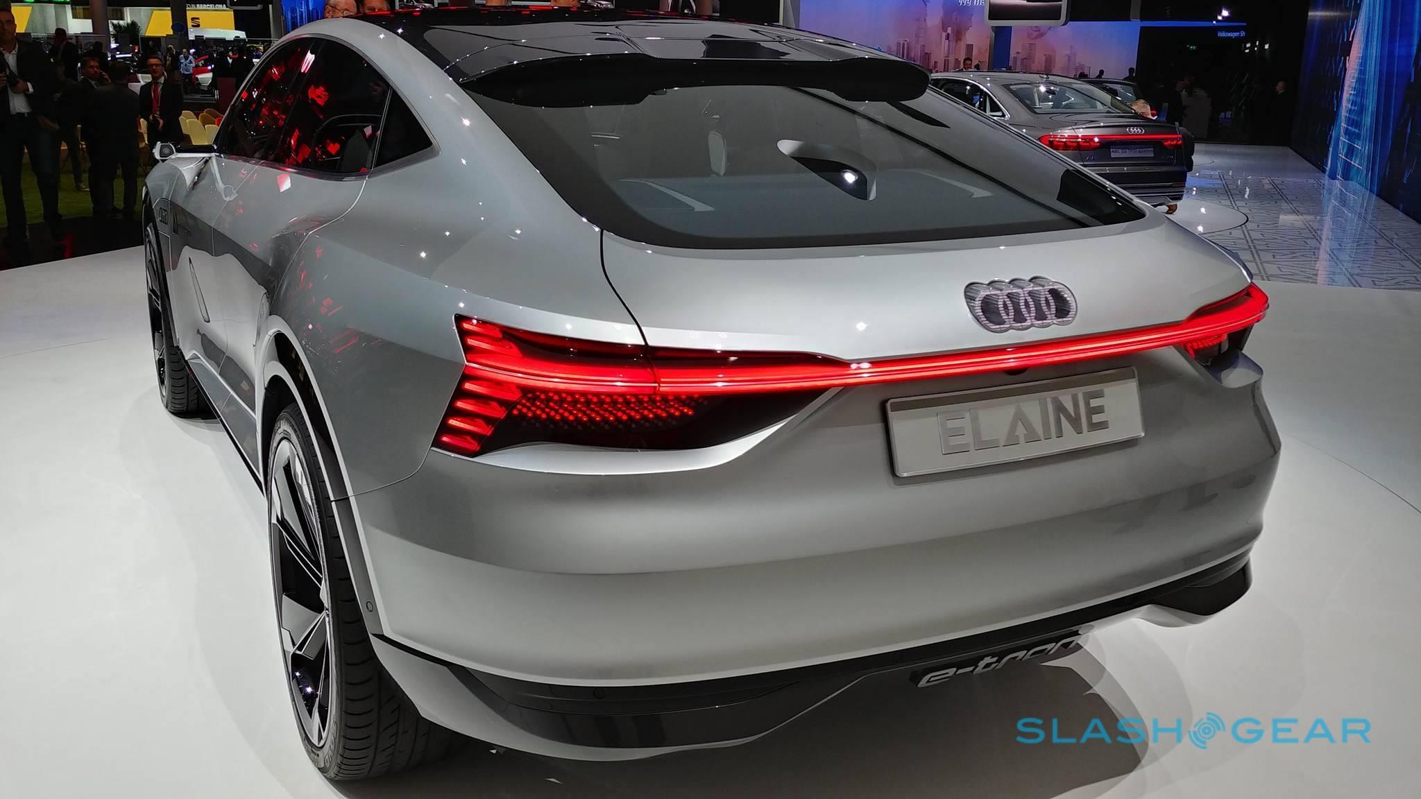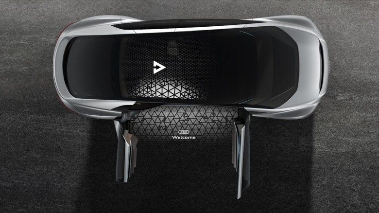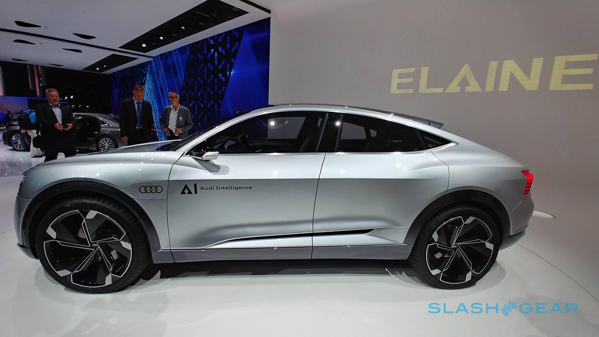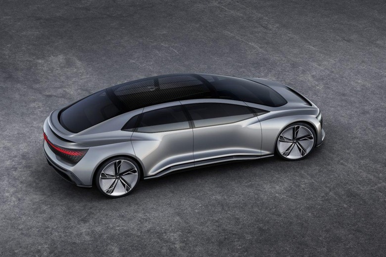 Under the skin, there'll be an electric motor for each wheel delivering 260 kW of power and over 405 lb-ft. of torque. Audi envisages range of around 500 miles on a charge, thanks to an 800 volt, solid body battery with capacity much in excess of today's li-ion cells. It'll charge either through wired or inductive means, including at the same AI Zones that Audi outlined for the Elaine.