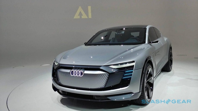 Under the skin, there'll be an electric motor for each wheel delivering 260 kW of power and over 405 lb-ft. of torque. Audi envisages range of around 500 miles on a charge, thanks to an 800 volt, solid body battery with capacity much in excess of today's li-ion cells. It'll charge either through wired or inductive means, including at the same AI Zones that Audi outlined for the Elaine.