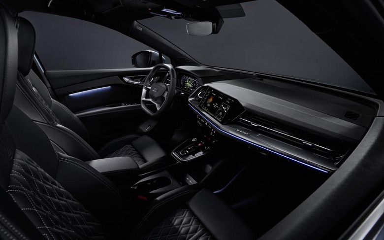 Final images of the exterior of the electric crossover haven't been released yet, only with the Q4 e-tron in camouflage, but Audi has shown a sizable gallery of cabin images. They show features like the new AR HUD, which will be optional, and the new infotainment touchscreen which can be configured up to 11.6-inches in size. Audi will also offer both traditional fabrics like leather for its seats, and animal-free versions using textiles.