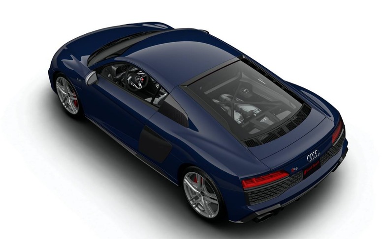 For the limited edition cars, however, there are some changes. The R8 performance donates its carbon fiber front sway bar, valuable for its weight saving potential. That cuts 4.4 pounds from the car. There's also a sport exhaust system, again previously only offered on the R8 performance, which delivers a more boisterous tailpipe note. That can be adjusted – and tamed for good-neighbor purposes – via a control on the steering wheel.
