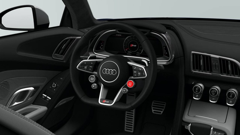 The convertible Spyder is only slightly slower, doing 0-60 mph in 3.5 seconds and having a top speed of 200 mph. Either way, all-wheel drive is standard, and you get Audi magnetic ride with adjustable damper firmness and Audi dynamic steering with speed- and drive mode-dependent ratio.