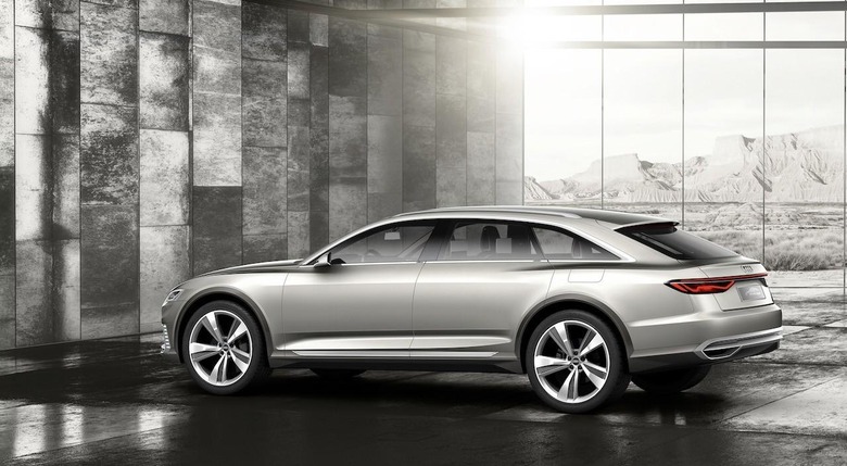 The Prologue Allroad concept envisaged a hybrid powertrain, combining a 4.0-liter TFSI twin-turbocharged V8 with an electric motor and 8-speed tiptronic transmission, rather than solely electric power. It also previewed a wireless charging system that Audi said it was working on for production cars.