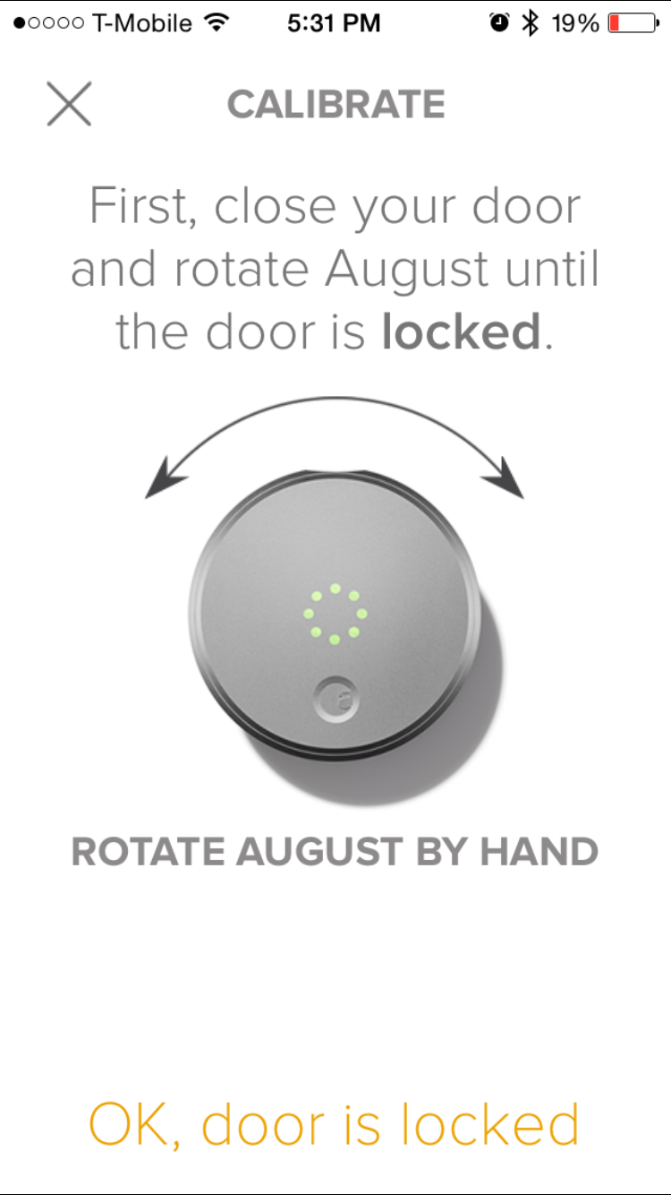 From there, August fits on via two wing clamps around back, and a plastic adapter for your deadbolt pin. Once it's on, you'll be asked to calibrate it by manually locking/unlocking the door, and then you're set. August even tells you which locks their system will work with, so there's no guess work or unnecessary returns to the store.