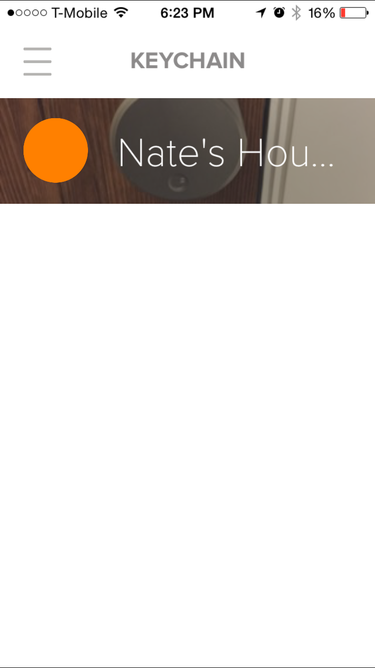 The app is cleanly laid out and easy to navigate, and even has provisions for multiple locations should you have more than one lock that needs an August, which August calls your 'keychain' (clever). Once you tap on the location in question, the app attempts to create a Bluetooth link to your August, and away you go. A red dot means you're locked up, while a green circle means your door is unlocked.